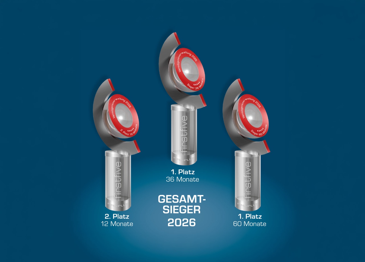 Die firstfive AG mit Sitz in Frankfurt am Main ist ein unabhängiges Institut, das Vermögensverwalter anhand realer Kundendepots bewertet – inklusive Rendite- und Risikokennzahlen über verschiedene Zeiträume. Für Spitzenplätze sind Top-Ergebnisse in drei Risikoklassen erforderlich. Die besten Häuser werden auf der jährlichen Gala mit den firstfive Awards ausgezeichnet.